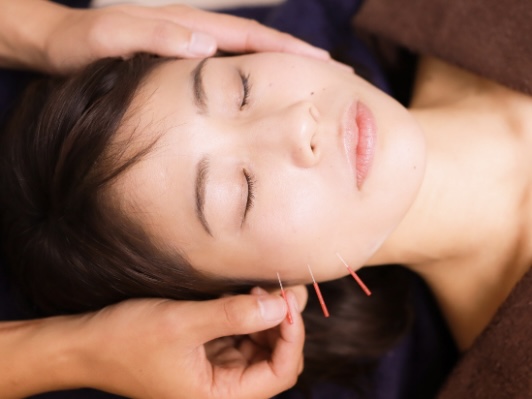 お顔のツボに鍼を打つことで血流を促進し、くすみやむくみ、小じわなどのお悩みにアプローチします。